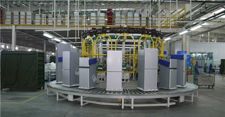 1、可以實現冰箱產線零部件組裝輸送、門體及箱體發泡、抽真空測試、產品性能檢測、成品自動化下線等工序地效率高組合,極大的提高生產效率。