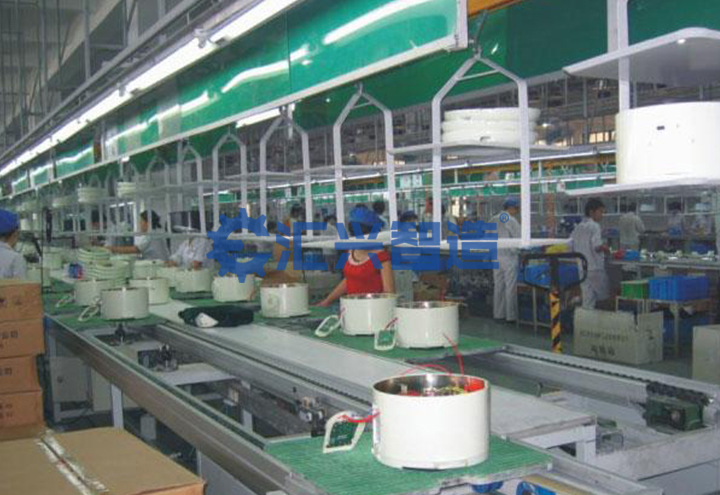匯興智造電飯煲整廠自動化生產(chǎn)線是由各式差速鏈裝配檢測線、懸掛輸送裝配線、輥道輸送裝配線、鏈板式電機浸漆線、電飯煲測試檢測線組成,另外包括自動噴涂設備、頂升平移機、打包機等各類專機設備,共同完成電飯煲的生產(chǎn)任務。