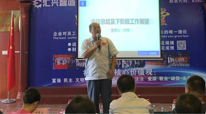 最后,由鐘輝董事長作會(huì)議總結(jié)及下階段工作展望。董事長鐘輝表示:“陪伴才是最長情的告白”感謝各位同事及貴賓對(duì)匯興智造一如既往的支持。企業(yè)的發(fā)展離不開每一位的努力,未來匯興智造將快速發(fā)展的階段。沿著老路去不了新的地方,正如我們會(huì)議場上唱響的歌曲,相信我們創(chuàng)造奇跡。會(huì)議取得圓滿成功,集眾智,匯眾力,搶時(shí)間,抓機(jī)遇,全體匯興人,一諾千金,奮斗到底!