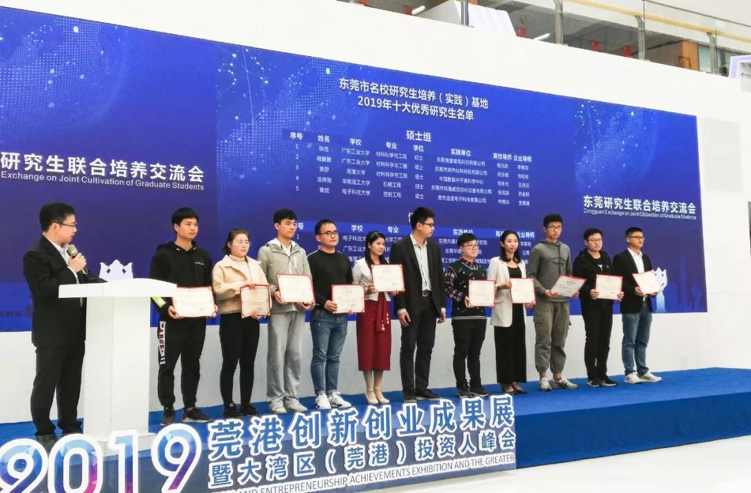 活動(dòng)中,東莞市為2019年十大優(yōu)秀聯(lián)合培養(yǎng)研究生頒獎(jiǎng),并對2019年東莞市研究生培養(yǎng)工作站進(jìn)行授牌。此外,還舉行了東莞市2020年研究生聯(lián)合培養(yǎng)專業(yè)領(lǐng)域發(fā)布會。在研究生聯(lián)合培養(yǎng)項(xiàng)目路演活動(dòng)中,展示了眾多研究生聯(lián)合培養(yǎng)的科技成果,例如交互式高透明全息顯示膜與系統(tǒng)、輕量化康復(fù)動(dòng)力外骨骼、AI賦能預(yù)診斷工具等。