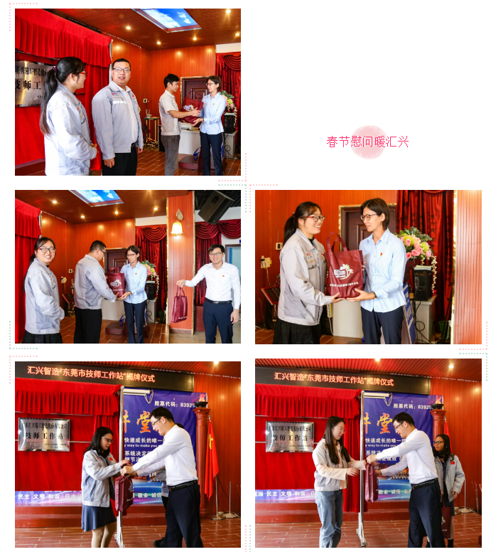 鐘輝董事長向蒞臨此次揭牌儀式的領(lǐng)導(dǎo)致以衷心的感謝。首先作了企業(yè)人才培養(yǎng)及規(guī)劃報告,表示公司一直秉承“創(chuàng)于手、精于工、智于器、匠于心”的工匠精神,任何事情都要精益求精、鍥而不舍,把手頭上的事情做到極致。接下來,將積極發(fā)揮技師工作站的指導(dǎo)作用,致力于發(fā)展高技能人才培養(yǎng)計劃。他強調(diào),感謝東莞這片沃土,讓我們努力在2019年實體經(jīng)濟發(fā)展面臨著國內(nèi)外復(fù)雜的嚴(yán)峻形勢下,公司仍能在逆境中實現(xiàn)增長。未來,匯興將更加重視技能人才的引進和培養(yǎng)工作,充分發(fā)揮高技能人才引領(lǐng)帶動作用,推動高技能人才隊伍建設(shè),增強企業(yè)創(chuàng)新能力和核心競爭力,把工作站的實際工作轉(zhuǎn)化為技術(shù)改革和提升人才素質(zhì)的力量源泉,為公司的發(fā)展提供有效的技能人才支撐,為東莞市打造“技能人才之都”城市貢獻一份力量。會后,大嶺山人社分局春運有序流動領(lǐng)導(dǎo)小組與匯興員工面對面交流,并送上春節(jié)慰問品,政府“送政策”“送溫暖”暖企暖心活動細節(jié),如同這寒冷的冬季中最溫暖人心的一抹陽光,讓與會員工代表非常感動如沐春風(fēng)倍感溫暖。技師工作站是東莞市新型高技能人才培養(yǎng)模式載體,是指承擔(dān)制訂技師培養(yǎng)規(guī)劃,開展技術(shù)培訓(xùn),多渠道加快培養(yǎng)高技能人才,總結(jié)推廣技師培養(yǎng)經(jīng)驗,普及應(yīng)用生產(chǎn)技能等活動,并建立技能人才和技能開發(fā)成果信息庫,展示技能創(chuàng)新成果的工作室,進而推動行業(yè)、企業(yè)產(chǎn)業(yè)升級和技術(shù)進步。匯興智造在智能制造領(lǐng)域擁有近20年的研發(fā)、設(shè)計、實施、應(yīng)用經(jīng)驗,通過打造智能裝備全產(chǎn)業(yè)鏈產(chǎn)品(智能裝備硬件+系統(tǒng)軟件+系統(tǒng)服務(wù)),賦予傳統(tǒng)生產(chǎn)制造業(yè)更智能的元素,并用具性價比的整廠自動化系統(tǒng)解決方案幫助更多企業(yè)解決生產(chǎn)制造的痛點。此外,公司還獲批建立了“廣東省院士專家企業(yè)工作站”、“東莞市院士工作站”、“省級博士后創(chuàng)新實踐基地”、“廣東省智能制造系統(tǒng)工程技術(shù)研究中心”、“東莞市研究生培養(yǎng)工作站”、“東莞市技師工作站”、“江西理工大學(xué)先進制造技術(shù)研發(fā)中心”、“南昌大學(xué)機電工程學(xué)院研究生聯(lián)合培養(yǎng)基地”、“南昌大學(xué)機電工程學(xué)院研究生實踐基地”、“東莞理工學(xué)院教學(xué)實習(xí)基地”、“東莞理工學(xué)院城市學(xué)院就業(yè)實習(xí)基地”、“東莞職業(yè)技術(shù)學(xué)院校企合作伙伴單位”等多個科研平臺,這些科研平臺的引進為技師工作站建設(shè)賦能。