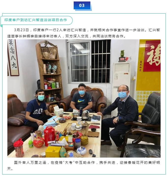 德不孤,必有鄰,德不孤,更必有貴客蒞“臨”,謙和為善的匯興智造,結(jié)識新朋友,不忘老朋友,這幾天企業(yè)到訪的重要客戶及朋友貴客非常之多,尊長來訪外賓到廠,群賢畢至少長咸集,內(nèi)厚外斂平和達觀的匯興人,廣結(jié)善緣,相信會易得善果。